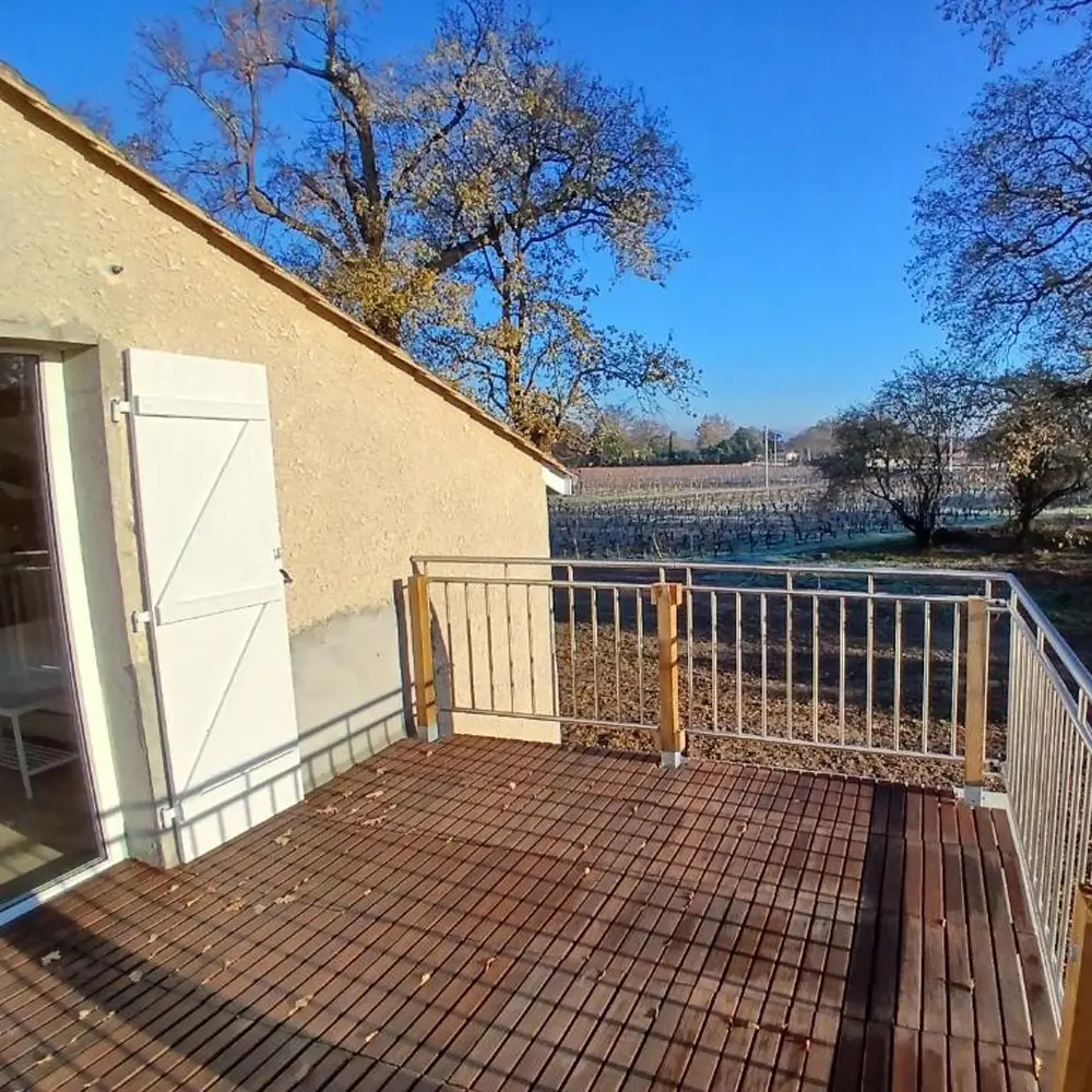 vignoble de Lalande-de-Pomerol environnant. Attenante à une exploitation viticole et entourée de vignes, la maison bénéficie d'un grand jardin boisé propice au calme et à la détente. Un cadre paisible